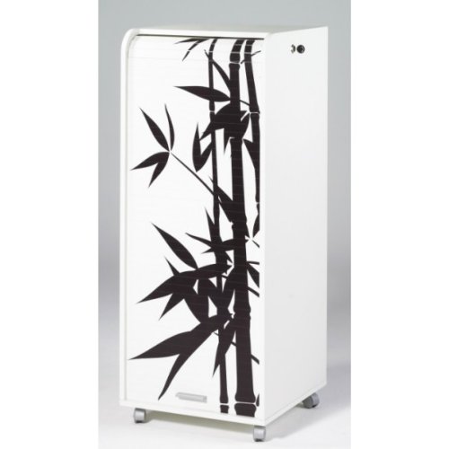 Caisson mobile à rideau ELLIS, blanc impression bambou, L 47.2 x P 47.2 x H 116.6 cm,