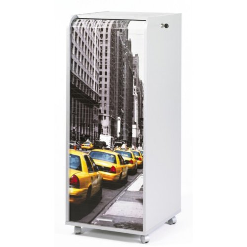 Caisson mobile à rideau ELLIS, blanc impression New York, L 47.2 x P 47.2 x H 116.6 cm,