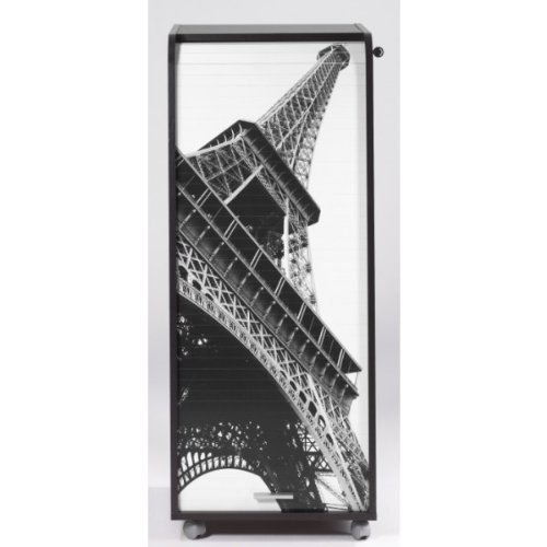 Classeur à rideau coulissant imprimé Tour Eiffel, Classeur à rideau OXFORD, blanc impression bambou, Grand caisson de bureau mobile noir rideau imprime + 3