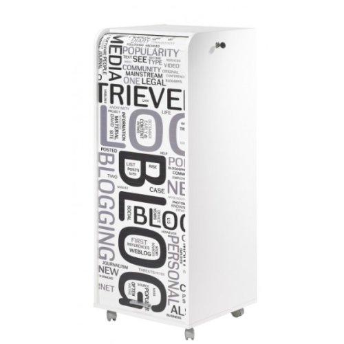 Caisson mobile à rideau ELLIS, blanc impression BLOG, L 47.2 x P 47.2 x H 116.6 cm,