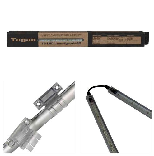 - TAGAN LED Rampe lumineuse "Linearlight", 8 - 11,5 Watt 24 volt, intensité: 420 lumen, angle d'éclairage:120 degré longueur: 598 mm, température de couleur:blanc chaud (3000K) durée de vie: 30.000 heures, non variable, 120 LED, contenu de la livraison: lampe, clip, vis (TG-Led-Linearlight-W-60-3 / 13333)