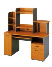 Surmeuble : 3 tablettes dont 2 fixes et 1 étagère support écran réglables en hauteur. 1 niche avec rangement 15 CD- Bureau : 1 porte pleine et 1 tablette coulissante support clavier, 1 niche et 2 tiroirs dont 1 pour dossiers suspendus. L : 145 cm - H : 154 cm - P: 60 cm