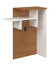 Comptoir d'accueil pour plans de travail largeur 140 cm et 160 cm réf. 014 et 016. Accueil debout/debout avec la table d'appoint largeur 120 cm réf. 012. Montage gauche/droite, à 12 cm du sol. L : 83/60 cm - H : 98/110 cm - P: 32 cm