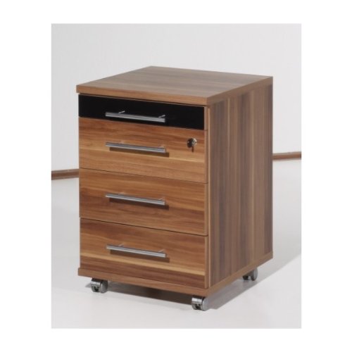 Caisson de bureau sur roulettes ALBI, coloris noyer américain/noir, L 42 x P 45 x H 60 cm ,